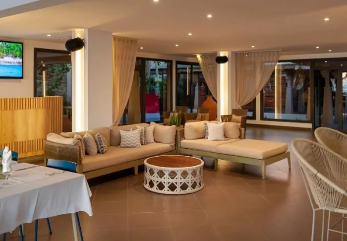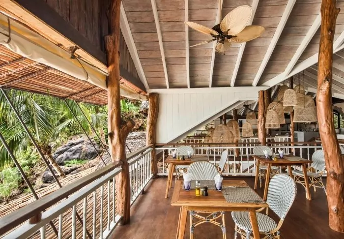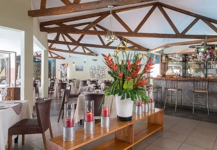 Het restaurant serveert heerlijke gerechten met onder andere verse vis en lokale ingrediënten, terwijl u het ontbijt kunt nuttigen op het schaduwrijke terras. De bar, direct aan het zwembad, is dé plek om de dag af te sluiten en te genieten van de zonsondergang boven de oceaan.