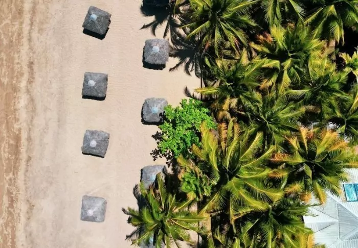 Het strand ligt op slechts een paar minuten lopen, maar er zijn mangroven in het gebied, dus de zee hier is niet geschikt om te zwemmen.