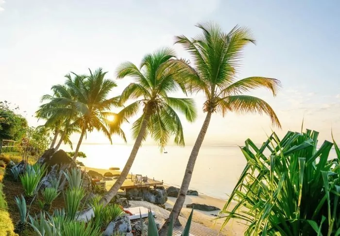 Gelegen aan de westkust van Nosy Be, op slechts een half uur rijden van de luchthaven, bevindt zich het 4-sterren Palm Beach Resort & Spa.
