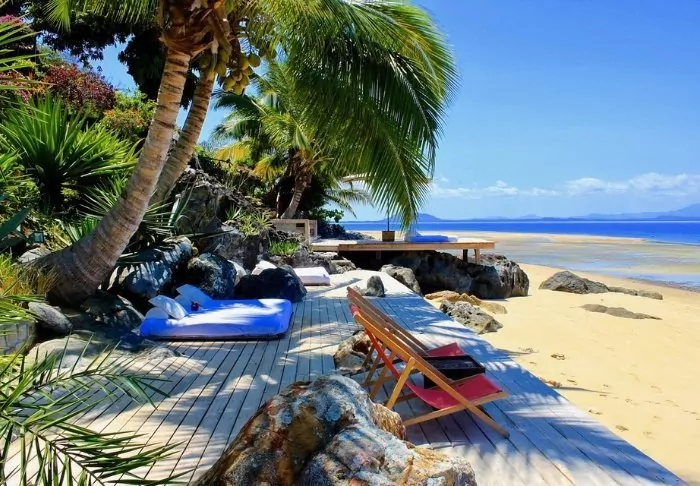 Aan beide kanten van je is het witte strand verlaten. Achter je is je lodge. Het is de enige lodge in de wijde omgeving. Hier zijn geen drukke straten, souvenirwinkels met koopjes of muziek uit de omringende restaurants. Het enige wat je hoort is het geluid van de zee en de wind – en het geluid van de stakk die in de keuken bezig is met het bereiden van je lunch.