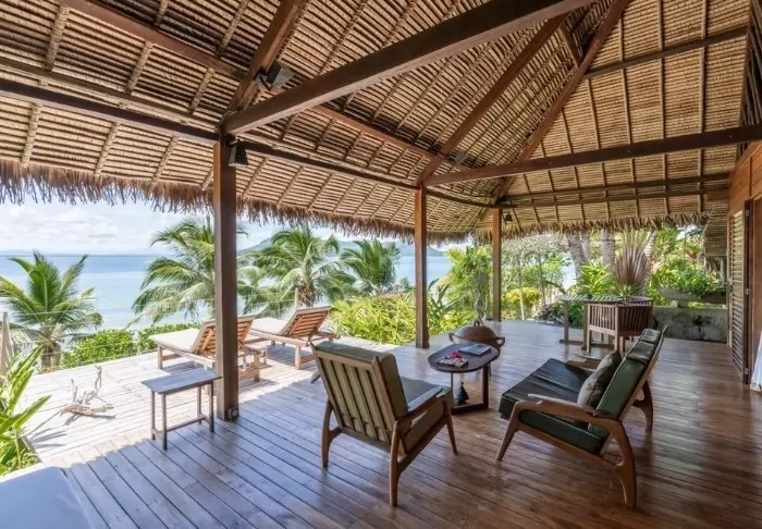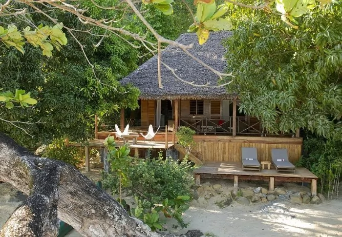 Alle bungalows zijn uitgerust met een eigen veranda met uitzicht en directe toegang tot het strand. Op de veranda staan ontspanningsmeubilair en elke bungalow heeft ook twee ligstoelen op het strand. Het ontwerp is in klassieke Malagasy stijl met veel hout en grote deuren die geopend kunnen worden om de bries door te laten en te ventileren.
