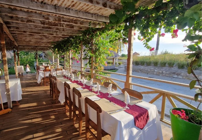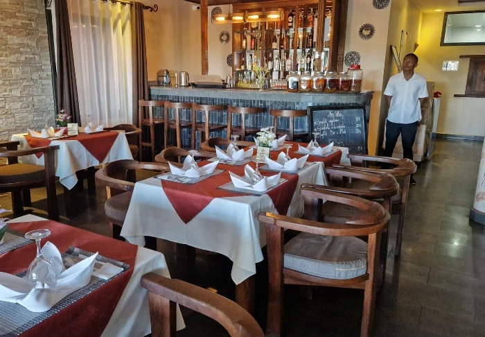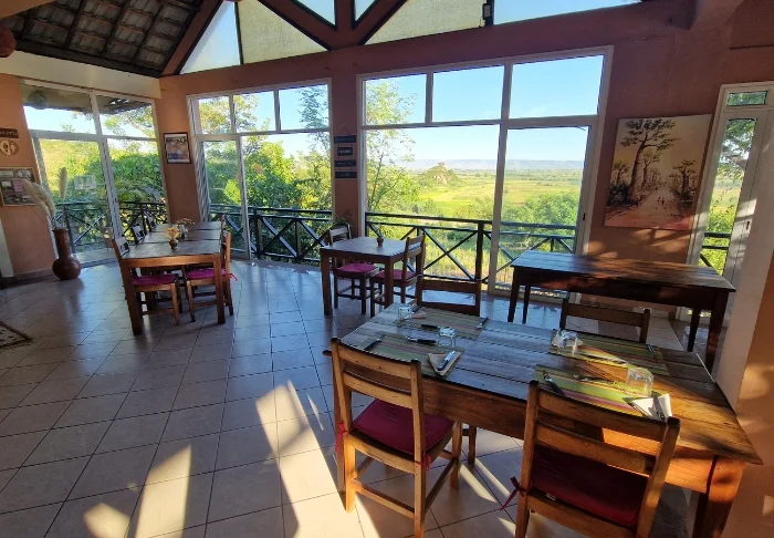Het restaurant van het hotel serveert een verrassende mix van Europese en Malagassische gerechten. Geniet overdag buiten op het terras van de zon of drink ’s avonds een drankje onder de sterrenhemel. Het ontbijt is hier een feest: vers fruit, huisgemaakte baksels, warme gerechten en vers gezette koffie zorgen voor een heerlijke start van uw dag.