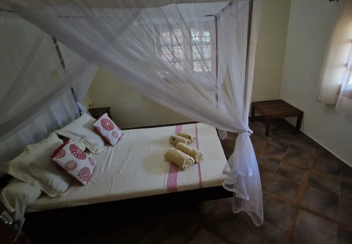 Hier zijn negen individuele bungalows, die allemaal zijn gebouwd van steen en rieten daken hebben. De bungalows zijn gezellig gemeubileerd en gedecoreerd in natuurlijke kleuren. Er hangen klamboes boven de bedden en er is een kluis en een ventilator. Er is geen airconditioning, maar door hun houten constructie en rieten daken is er bijna altijd een comfortabele temperatuur in de bungalows.