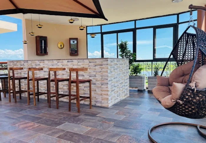 Het keukenpersoneel is echter speciaal geselecteerd voor hun taken. Het gezellige restaurant biedt goed bereid ontbijt, lunch en diner, en de koffie is werkelijk voortreffelijk! Er is ook een kleine bar die wijn en eenvoudige cocktails serveert. Als het weer het toelaat, ga dan naar het dakterras om van het uitzicht – en mogelijk de zonsondergang – over Tana te genieten.