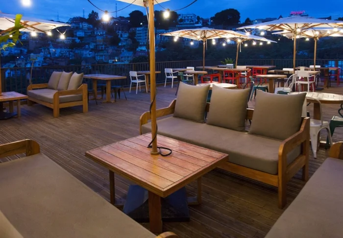 Boven op een heuvel geniet u hier van een dakterras met prachtig uitzicht over de daken van de stad. Neem een drankje terwijl u uitkijkt over het bruisende leven beneden en ziet hoe de zon langzaam achter de horizon verdwijnt.