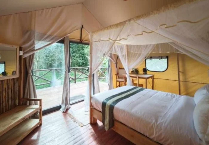 Er zijn zowel bungalows als luxe tenten, allemaal eenvoudig maar comfortabel ingericht, met houten accenten, muskietennetten en een klein terras – de perfecte plek voor een kopje koffie terwijl u luistert naar de geluiden van de jungle. U beschikt over warm water in de douche, de meeste tijd van de dag elektriciteit, en in de gemeenschappelijke ruimtes is er wifi beschikbaar.
