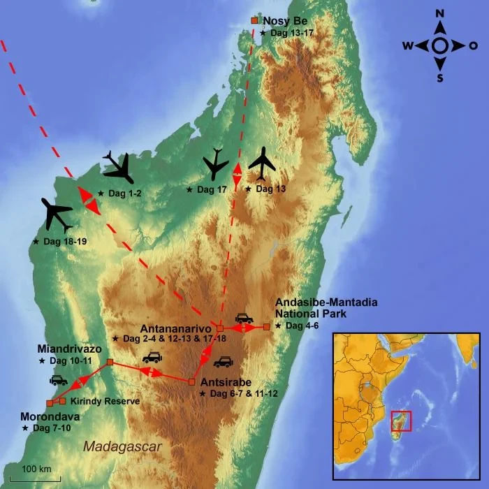 Vandaag vertrekt u vanaf de door u geselecteerde luchthaven, met tussenlanding(en) onderweg. Uw reis brengt u naar het indrukwekkende eiland Madagaskar, het grote rode eiland in de Indische Oceaan.