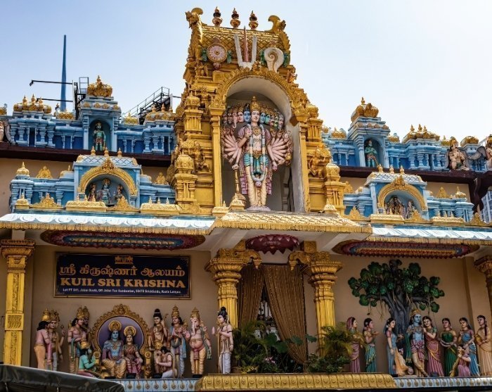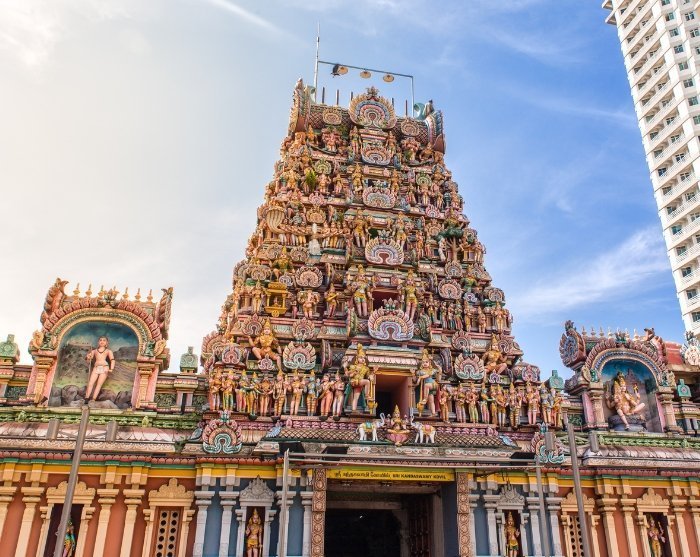 Vervolgens bezoek je de Sri Kandaswamy Temple, die werd gebouwd in het begin van de 20e eeuw en is gewijd aan Lord Murugan. De tempel staat bekend om zijn indrukwekkende architectuur, die de traditionele Zuid-Indiase stijl combineert met kleurrijke en gedetailleerde decoraties. De tempel is een vredige en spirituele plek die je een diep inzicht geeft in de tradities en praktijken van het hindoeïsme, en als je wilt kun je deelnemen aan een gebed.