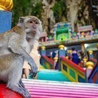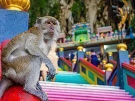 Bij aankomst bij de grotten word je verwelkomd door het adembenemende zicht van de regenboogtrap, een levendige serie van 272 kleurrijke treden die naar de grotten en de Hindoe-tempels leiden die erin verscholen liggen.