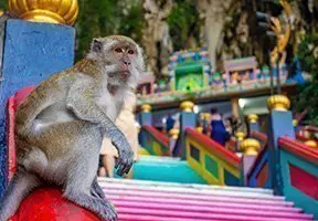 Net buiten Kuala Lumpur ligt een van de belangrijkste attracties van Maleisië, de kalksteengrotten bekend als de Batu Caves.
