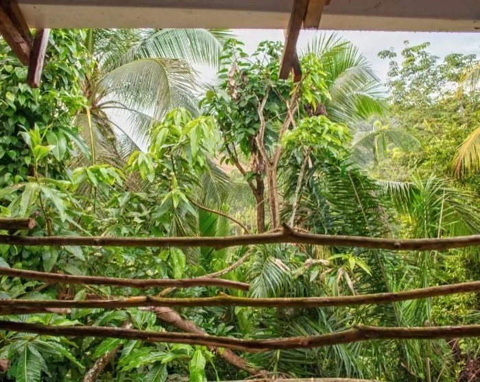 U ontwaakt in het magische tafereel van het regenwoud, dat uitnodigt tot een moment van rust voordat het ontbijt wordt geserveerd op de houten veranda van de lodge, met uitzicht op de pittoreske omgeving.