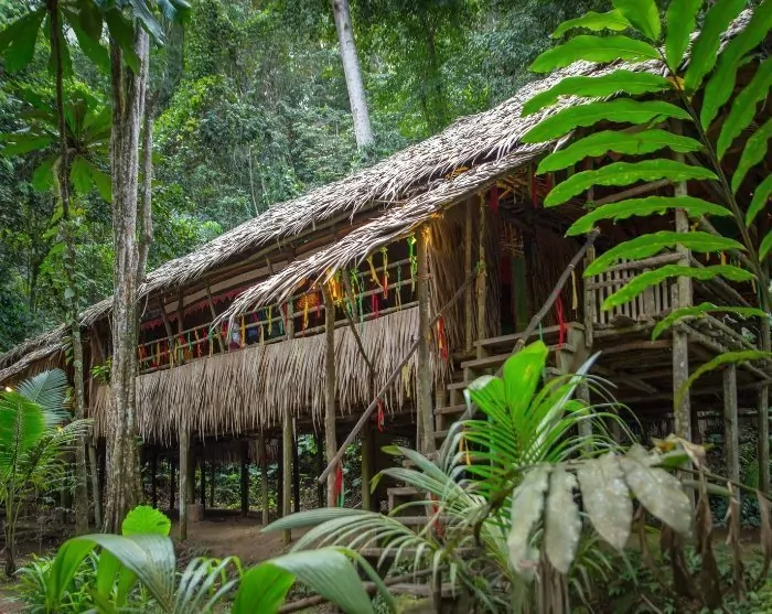 Voor uw verblijf in het regenwoud hoeft u niet veel in te pakken. Kies voor een lichte rugzak of kleinere tas en laat uw koffer achter in uw hotel. Van daaruit wordt u opgehaald en ongeveer 5½ uur naar het Nationaal Park Batang Ai gereden, met een tussenstop onderweg bij Lachau Bazaar, waar u kunt rondstruinen tussen kleine winkeltjes en een schilderachtige lokale markt. Geniet van een vroege lunch in een van de gezellige lokale koffiehuizen voordat u verder gaat naar het Batang Ai Lake. Hier stapt u aan boord van een traditionele longboat, die u ver van de beschaving naar het huis aan de rivier van de Iban-stam brengt, waar zelfs mobiele signalen wijken voor de ongerepte natuur. De boottocht duurt ongeveer 1,5 uur.