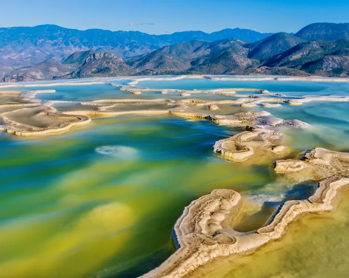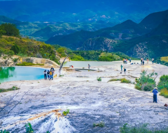 De reis gaat verder naar een van de meest opvallende natuurverschijnselen van Oaxaca, Hierve el Agua. Dit zijn versteende watervallen die gedurende duizenden jaren zijn gevormd. De naam "Hierve el Agua" betekent "het water kookt" in het Spaans, vanwege de thermale bronnen die er verschijnen. Hoewel het water lijkt te bubbelen, is het ideaal voor een verfrissende duik. Neem een duik in de natuurlijke baden terwijl u geniet van een adembenemend uitzicht op het landschap.