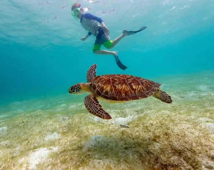 Je begint de dag met een pick-up bij je hotel in Playa del Carmen, waarna de reis richting Akumal gaat, een van de beste snorkelplekken van Mexico. Akumal staat bekend om zijn stabiele populatie zeeschildpadden, die het hele jaar door in de baai blijven. Hier heb je de mogelijkheid om dicht bij de zeeschildpadden in het kristalheldere water te komen terwijl je snorkelt bij deze geweldige dieren in hun natuurlijke habitat.