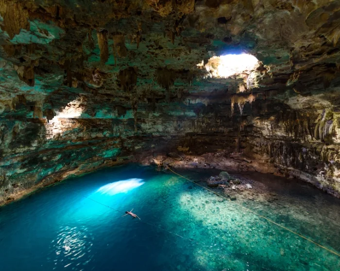 Wilt u méér van de Mexicaanse cultuur en natuur ontdekken? Ga mee op deze halve dag excursie en geniet van een verfrissende duik in ondergrondse waterpoelen en een bezoek aan een traditioneel Mayadorp.