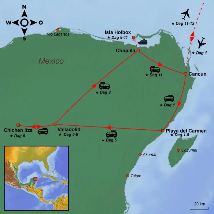 Ga met ons mee op avontuur op het prachtige schiereiland Yucatán in Mexico en bezoek Playa del Carmen, Valladolid, Chichen Itza en sluit af met een strandvakantie op de paradijselijke stranden van Isla Holbox.