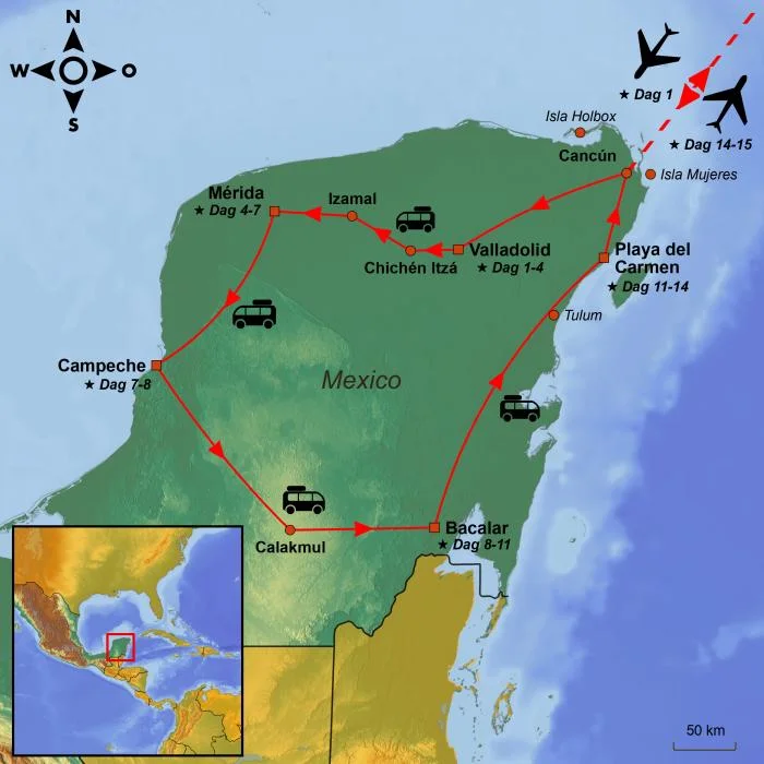 U duikt diep in de fascinerende wereld van de Maya wanneer u het adembenemende Chichén Itzá bezoekt, en de indrukwekkende Calakmul-ruïnes verscholen in de weelderige jungle.