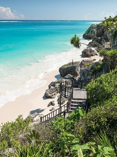De reis eindigt in het vakantielandparadijs Playa del Carmen met zijn witte zandstranden, de Caribische Zee en tijd om te ontspannen onder de zon.