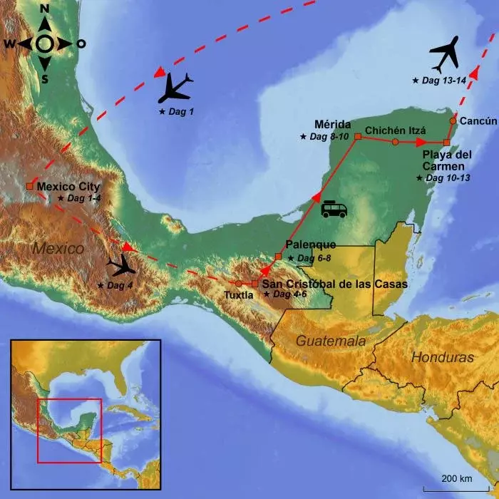 *Op dit moment heeft Rijksoverheid een reisadvies voor de weg van San Cristóbal naar Palenque via de watervallen Agua Azul en Misol Ha (Route 199) omdat deze vaak wordt getroffen door demonstraties en wegblokkades. Zolang Rijksoverheid deze route afraadt, wijzigen we je programma voor deze dag en brengen we je via een andere route via de stad Villahermosa naar Palenque. Helaas kun je met deze routewijziging de twee watervallen niet bezoeken.