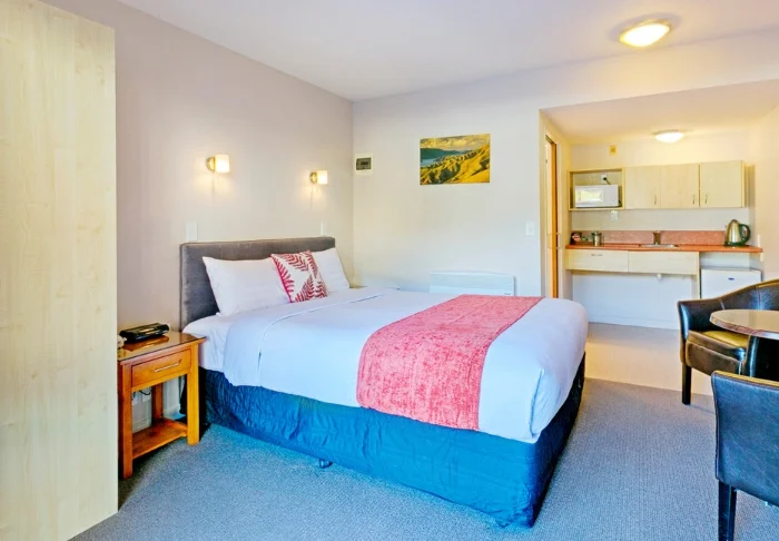 Het motel beschikt over 18 kamers in diverse categorieën. De kamers die bij onze reizen zijn inbegrepen, zijn allemaal voorzien van een eigen badkamer en een compacte kitchenette met servies, bestek, magnetron, elektrische koekenpan, koelkast, waterkoker en broodrooster—alles wat u nodig heeft om zelf lichte maaltijden en snacks te bereiden. Verder vindt u er onder meer een TV, wifi, elektrische verwarming en verwarmde dekens voor de koelere nachten. Gratis parkeren is beschikbaar voor alle gasten.