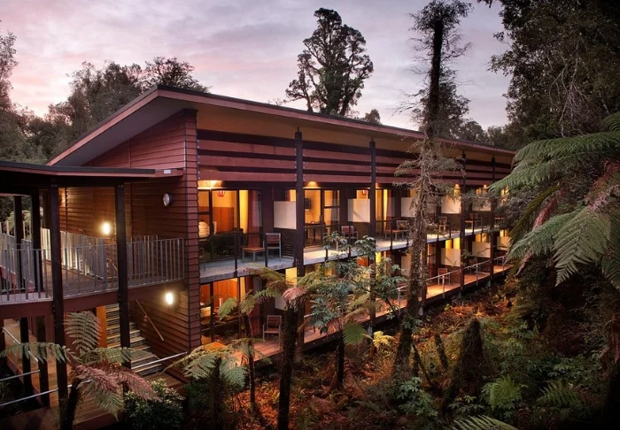Het 5-sterren Legacy Te Waonui Hotel ligt op een rustige, schilderachtige plek midden in Franz Josef Village, omringd door dichtbegroeid bos. U bevindt zich op een steenworp afstand van de gletsjer en de gezellige winkeltjes en restaurants van het dorp. Het hotel is met veel respect voor de natuur ontworpen en past moeiteloos in het weelderige landschap. Duurzaamheid staat centraal: het hotel is gebouwd met energiezuinige toepassingen, natuurlijke materialen en hergebruikt hout.