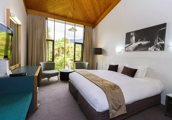Het hotel beschikt over 227 kamers en suites, die allemaal sfeervol en comfortabel zijn ingericht. Vanuit uw kamer kijkt u uit op het Rotoruameer of op de weelderige, groene tuinen. Elke kamer is uitgerust met gratis wifi, een flatscreen LCD-TV, een kluisje en faciliteiten voor het zetten van koffie en thee – ideaal om heerlijk te ontspannen met een kopje koffie of thee op uw eigen kamer.