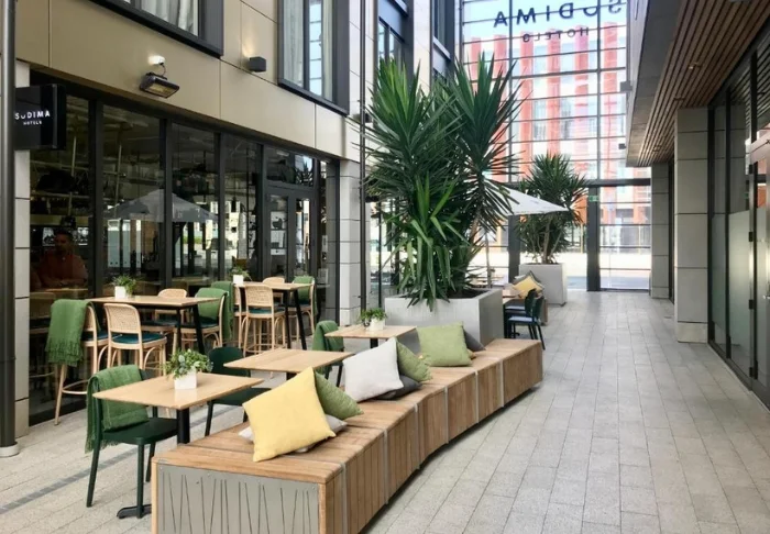 Heeft u haast? Loop dan even langs het Frans geïnspireerde Fond(ou) Café van het hotel voor heerlijke sandwiches, versgebakken taarten en uitstekende barista-koffie – alles wordt met een glimlach geserveerd, zodat uw dag goed begint.