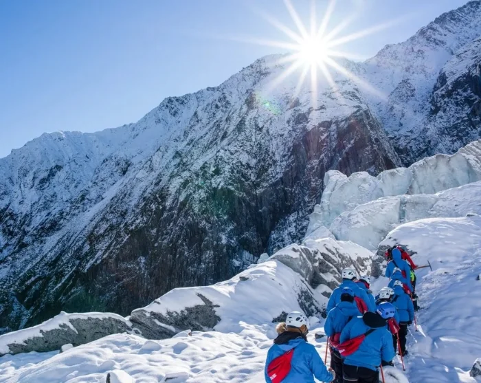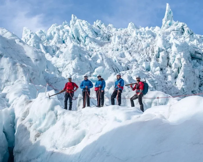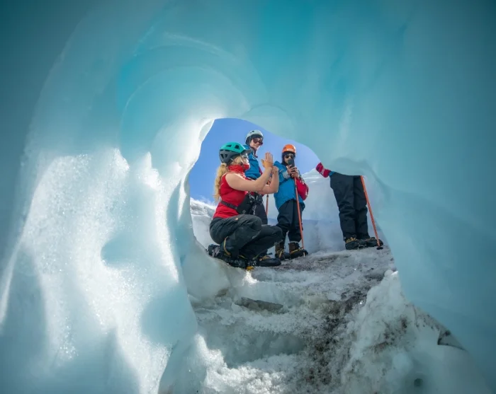 Inbegrepen in de prijs: Helikoptervluchten, professionele gletsjergids, stijgijzers (voor op het ijs), harnas, helm, waterdichte jas, waterdichte broek, wandelboots en sokken, wandelstokken, heuptas voor stijgijzers en kleine persoonlijke items, warme muts en handschoenen.