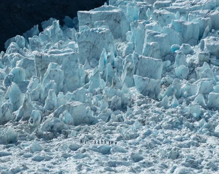 Na de landing neemt uw gids u mee op een circa twee uur durende gletsjerwandeling. U baant zich een weg door een steeds veranderend landschap van diepe gletsjerpleten, hoge ijsformaties en – als de omstandigheden het toelaten – zelfs ijsgrotten. Dit is uw kans om het knisperende ijs onder uw voeten te voelen, te luisteren naar het karakteristieke gekraak en u te vergapen aan de intense, blauwe tinten die alleen in levende gletsjers voorkomen. Uw gids deelt interessante weetjes over de beweging, geschiedenis en natuur van de gletsjer. De route wordt dagelijks aangepast aan de omstandigheden, zodat veiligheid en plezier altijd voorop staan.