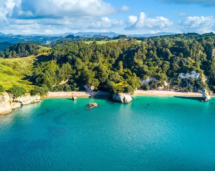 *Indien een bezoek aan Hot Water Beach niet mogelijk is vanwege de getijden, wordt het dag-tot-dag programma enigszins aangepast. De wandeling naar Cathedral Cove vindt plaats voor de lunch en ‘s middags bezoek je andere prachtige stranden, zoals Te Pare, Cooks Beach en Lonely Bay.
