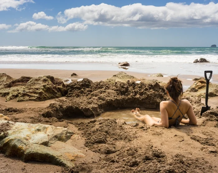 Als het tij het toelaat, bezoek je Hot Water Beach, waar je een kuil in het zand kunt graven om je eigen geothermische spa te creëren terwijl de oceaangolven je zachtjes afkoelen. Vergeet je zwemkleding en een schone set kleding niet voor deze unieke ervaring!*