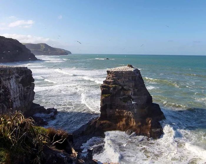 Het laatste bezoek brengt u naar Coopers Creek Winery, bekend om zijn avontuurlijke selectie van druivensoorten en blends, en het brede aanbod aan wijnen. De rondreis eindigt laat in de middag aan de Tasmanzee bij Muriwai Beach. Tijdens het broedseizoen (augustus tot maart) heeft u de mogelijkheid om de Australaziatische jan-van-gent (Morus serrator), een van ‘s werelds grootste zeevogels, in hun natuurlijke habitat te zien. U komt dichtbij een van de weinige kolonies gannets op het vasteland ter wereld, genesteld op de kliffen met uitzicht over de Tasmanzee, waardoor u een uniek inzicht krijgt in hun gedrag vanaf een veilige afstand zonder hun omgeving te verstoren. Het uitzicht strekt zich kilometers ver uit langs Muriwai’s wilde, zwarte zandstrand.