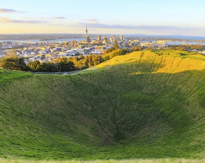Auckland is uniek doordat de stad is gebouwd op meer dan vijftig vulkanische kraters, die nu vredige groene heuvels vormen en het stadsbeeld een bijzonder karakter geven.