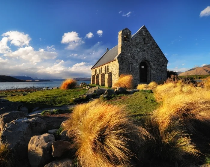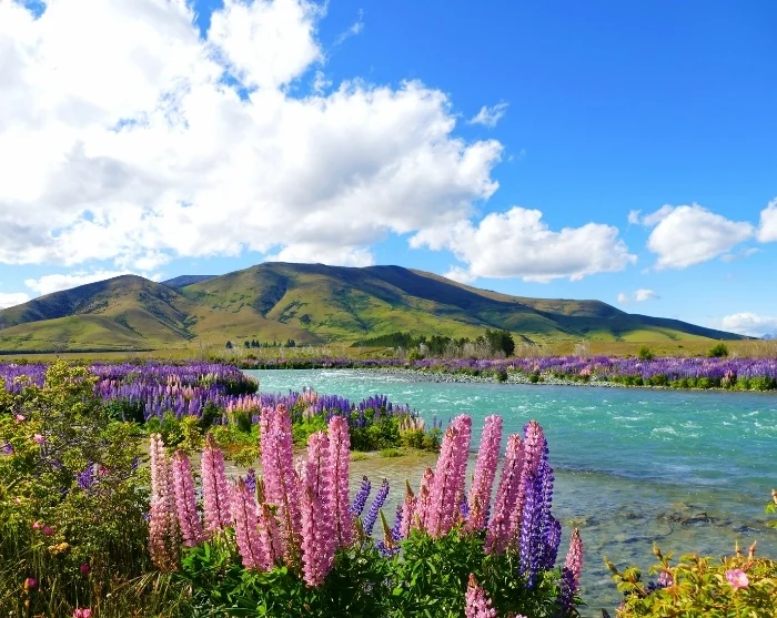 De reis voert u vanuit Christchurch over de glooiende Canterbury Plains richting het ruige binnenland, waar u de besneeuwde Zuidelijke Alpen tegemoet rijdt. Uw eerste stop is het iconische Lake Tekapo (Takapō), beroemd om het kristalheldere, turquoise water en de sfeervolle stenen kerk, de Church of the Good Shepherd – zonder twijfel één van de meest gefotografeerde bezienswaardigheden van Nieuw-Zeeland.