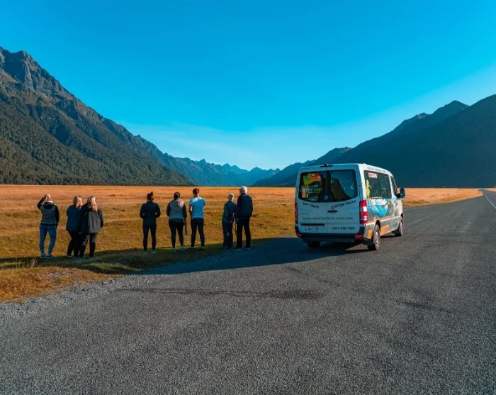 U vertrekt vanuit Queenstown en volgt de oevers van het schilderachtige Lake Wakatipu, waarna u door het indrukwekkende landschap van Devil’s Staircase rijdt. U passeert het rustige plaatsje Te Anau en steekt Fiordland National Park binnen, waar de natuur zich steeds opnieuw onthult. Geniet onderweg van weidse gletsjervalleien zoals de Eglinton Valley, het kristalheldere Mirror Lakes, diepe rivierkloven zoals de Hollyford River, en eeuwenoud, dichtbegroeid bos. Onderweg zijn er volop mogelijkheden om te stoppen en de adembenemende uitzichten vast te leggen.