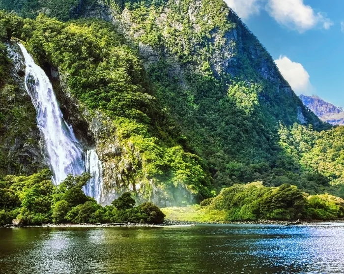 Bij aankomst in Milford Sound stapt u aan boord voor een avontuurlijke cruise van circa 2 uur door de fjord. Onderweg vaart u langs imposante, steile kliffen, donderende watervallen, weelderig regenwoud, en als u geluk heeft, ziet u dolfijnen en Nieuw-Zeelandse pelsrobben die op de rotsen liggen te zonnen. Een enthousiaste natuurgids is aanwezig om u onderweg van interessante weetjes over het gebied te voorzien.