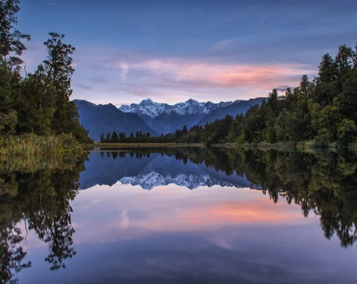 Vlak voordat u Franz Josef bereikt, maakt u nog een stop bij Lake Matheson (Te Ara Kairaumati), dat beroemd is om zijn prachtige spiegelingen van Mount Cook en de Zuidelijke Alpen op heldere dagen. Een ontspannen wandeling van 4,5 km rond het meer levert talloze bijzondere fotomomenten op.