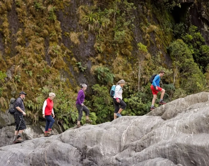 De afstand van Franz Josef tot de parkeerplaats bij de gletsjer is ongeveer 4,5 km. Je kunt de route heen en terugwandelen, of een taxi nemen naar de parkeerplaats en daarna terug naar het dorp wandelen. Het pad is vrijwel overal vlak.