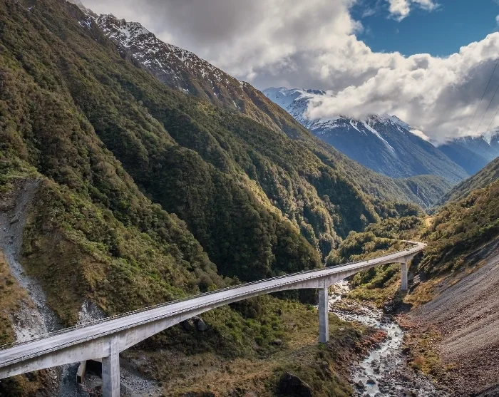 Als u verder oostwaarts rijdt, passeert u het Otira Gorge-uitkijkpunt, ook wel Death’s Corner genoemd. Hier kijkt u uit op het indrukwekkende, 440 meter lange Otira Viaduct en wie weet spot u zelfs de nieuwsgierige bergpapegaai, de kea. In het dorpje Arthur’s Pass kunt u kiezen voor een korte wandeling naar de 131 meter hoge Devil’s Punchbowl-waterval (Te Tautea o Hine-pūkohurangi), of u bezoekt de gezellige cafés en winkeltjes en komt tot rust met een kop koffie.