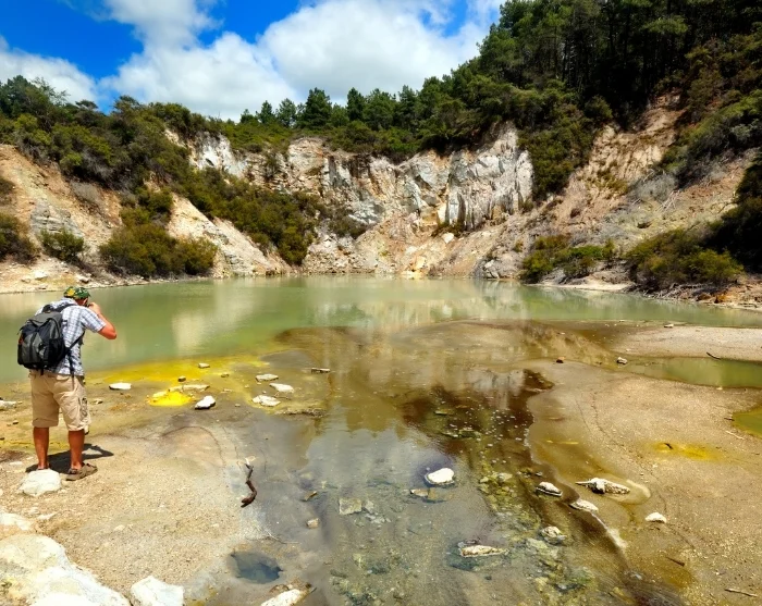 Wandel aan de oever van Lake Rotorua en geniet van de rust en natuurlijke omgeving, of kies voor een optionele excursie naar Hell’s Gate en ervaar de wereldberoemde modderbad spa.