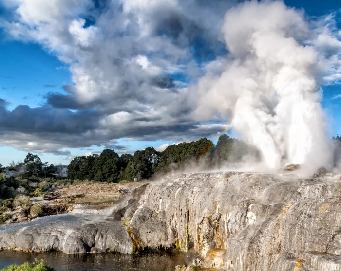 Rotorua ligt boven op een levendige vulkanische zone, waar de kracht van de natuur overal voelbaar is. In en rondom de stad vindt u borrelende modderpoelen, spuitende geisers en zwaveldampen die uit de aarde omhoog kringelen. Rotorua staat daarnaast bekend om zijn diepgewortelde banden met de Maoricultuur en unieke wellness-ervaringen.