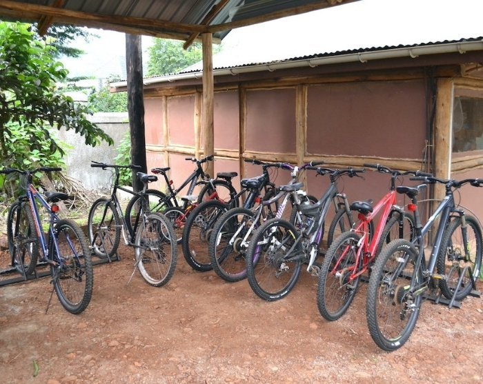 Wat volgt is een begeleide fietstocht door de lokale dorpen, vergezeld door een gids die je meer vertelt over het dagelijks leven in Oeganda. Er is geen vaste route, waardoor je zelf het tempo kunt bepalen en kunt kiezen waar je naartoe wilt. De tocht duurt tussen de 2-4 uur, met fietsen in verschillende maten en helmen voor iedereen. En maak je geen zorgen, de fietsen zijn in uitstekende staat – het begon tenslotte allemaal met een fietswerkplaats…