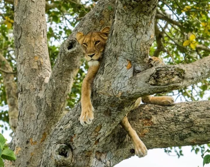 Na het ontbijt vertrekt u naar Bwindi Impenetrable Forest. Maar eerst is er een game drive door het zuidelijke deel van Nationaal Park Queen Elizabeth in een gebied dat Ishasha heet. Deze vlakten zijn vooral bekend om de boomklimmende leeuwen, die graag rusten op de takken van grote Afrikaanse vijgenbomen.