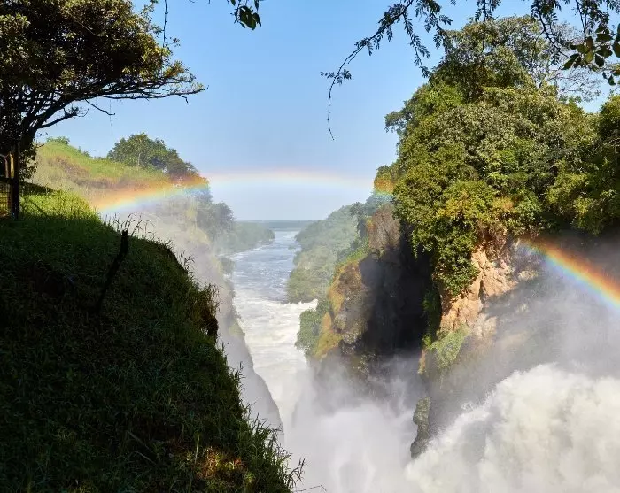 Een van de grootste hoogtepunten bij Murchison Falls is waar de 500 meter brede (Witte) Nijl door een slechts 7 meter brede kloof dondert en van 45 meter hoog naar een lager gelegen rivier stort. De aanblik van het bulderende, schuimende water is een indrukwekkende herinnering aan de krachten van de natuur.