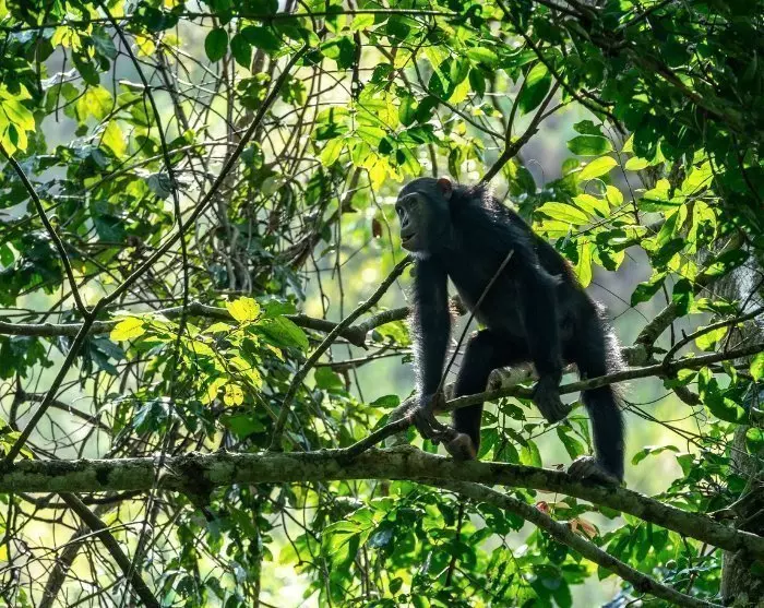 Terwijl Murchison Falls een rijke diversiteit aan landschap biedt met rivier, savanne, moeras en bos, bestaat Kibale voornamelijk uit dicht, vochtig regenwoud. Het is een van de beste plekken in Afrika om primaten in het wild te zien. De chimpansee is wellicht de bekendste, maar het bos is ook de thuisbasis van rode colobusapen, zwart-witte colobusapen, de opvallende L’Hoests aap, en verschillende andere soorten.