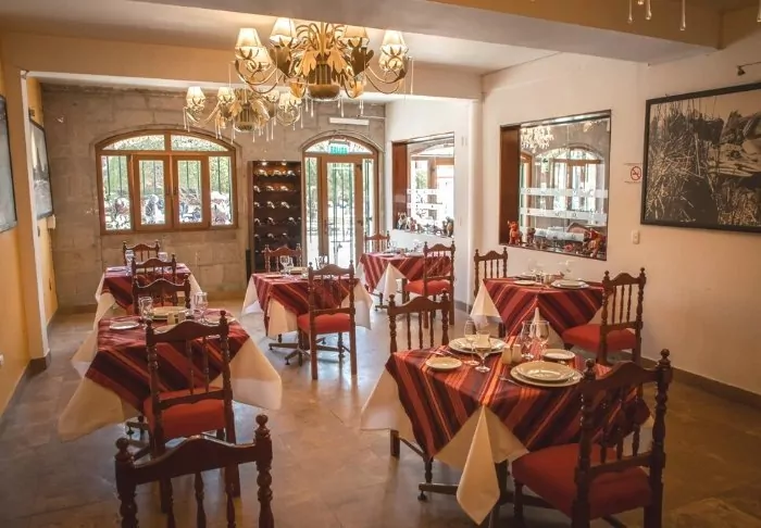 Je ontbijt (inbegrepen) wordt geserveerd als buffet in het hotelrestaurant, Taypicamaña, dat uitkijkt over het plein van de stad.