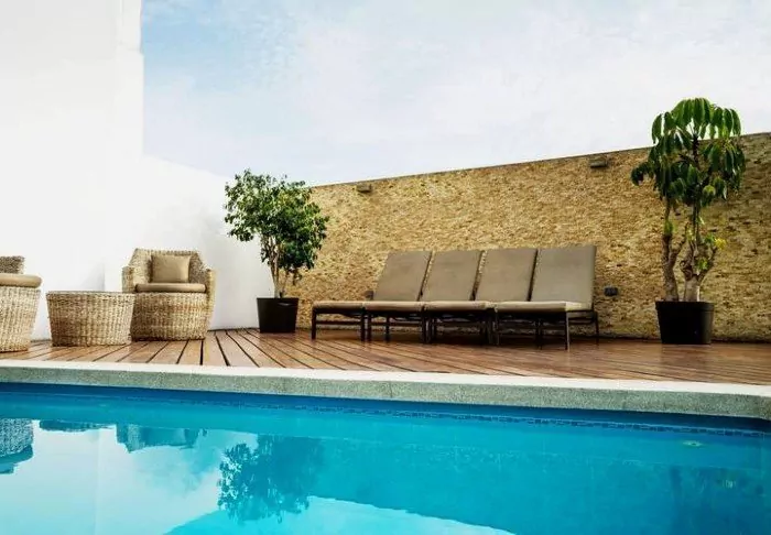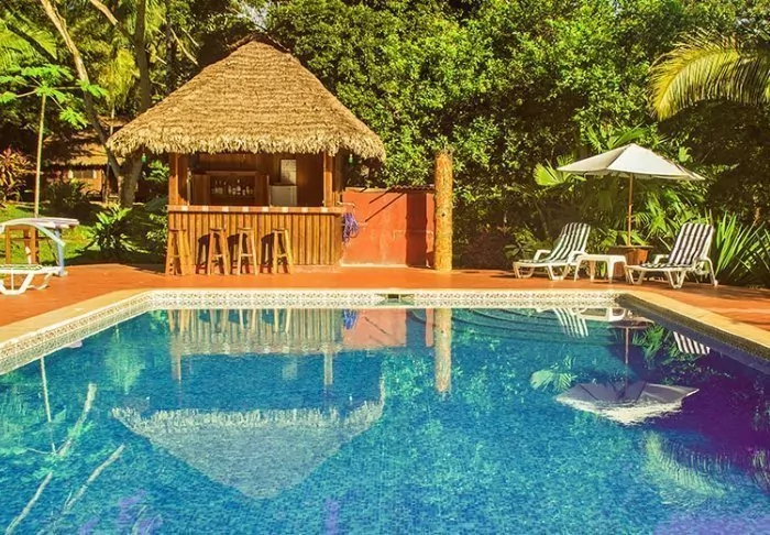 Als je een verfrissende duik nodig hebt na de interessante excursies van de dag, is er een klein zwembad in de weelderige tuin. Er is ook een zwembadbar, waar je koude drankjes en heerlijke cocktails kunt bestellen.