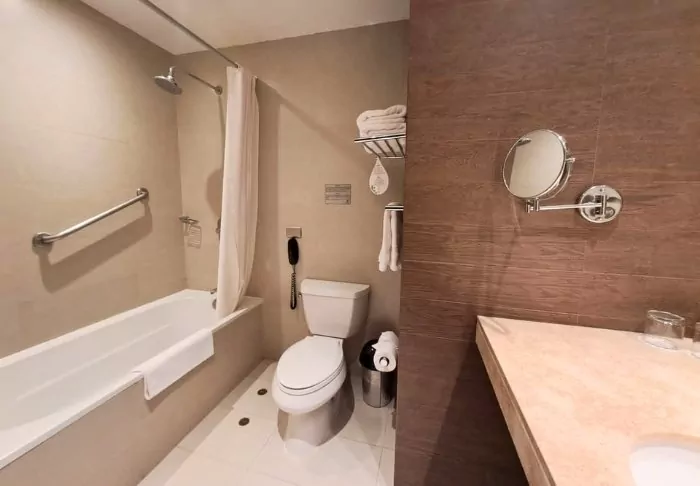 De kamers zijn modern en goed ingericht met alles wat je nodig hebt: een goed bed om in te slapen, een tv, wifi, airconditioning, een minibar, een waterkoker voor koffie/thee, een kluis een eigen toilet/douche. En wees niet bang, er zijn geluiddichte ramen, zodat je kunt genieten van een goede nachtrust, ondanks dat je op de luchthaven bent.