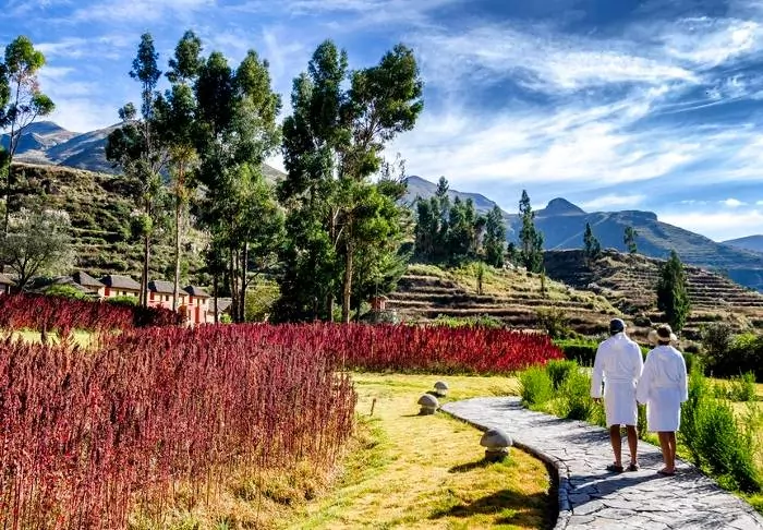 Colca Lodge heeft zijn eigen thermale baden, die het ideale startpunt zijn als je helemaal tot rust wilt komen. Laat met een koud drankje je lichaam ontspannen in het warme water terwijl het geluid van de kabbelende rivier je geest tot rust brengt. Daarna kun je een dutje doen in een van de ligstoelen die in de tuin tussen de kleurrijke quinoaplanten staan. De lodge heeft ook privéthermaalbaden die je kunt huren.