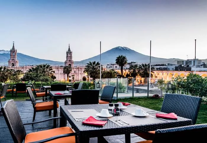 Tot de faciliteiten van het hotel behoren een restaurant dat Peruaanse en internationale gerechten serveert, en een dakterras waar je ontspannen kunt genieten van het prachtige uitzicht op de met sneeuw bedekte toppen van de nabijgelegen vulkanen.